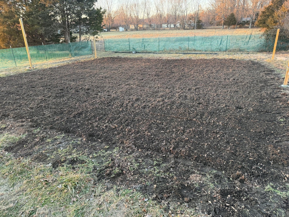 February 8th, it was dry enough and the ground had thawed. A second pass with the tiller helped work in the remaining leaves that are already starting to decompose. Trying to get a head start on the soil this year when the weather allows.