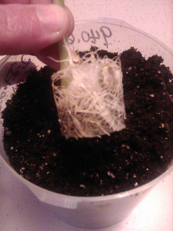 What was really neat was the really-neat root system, lol. The Myco was like packing material in a shipping box - what do I do with it? Uhhh, start another! Ha ha. I plugged this little darlin' into a SS Mix leftover container; THAT assembly will now get Expert Gardener 24-8-16 at regular strength from now on. Lol - The prescription bottle is lost in the fridge, somewhere. More 'acid-testing'!---eric g