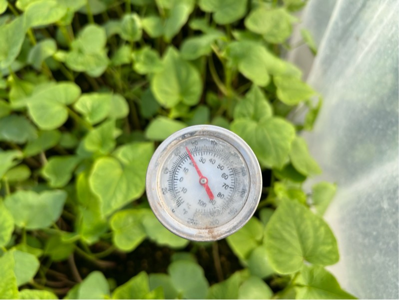 24 hours after turning on the soil heating cables the temp is 10 degrees higher in my planting spots. Not bad!