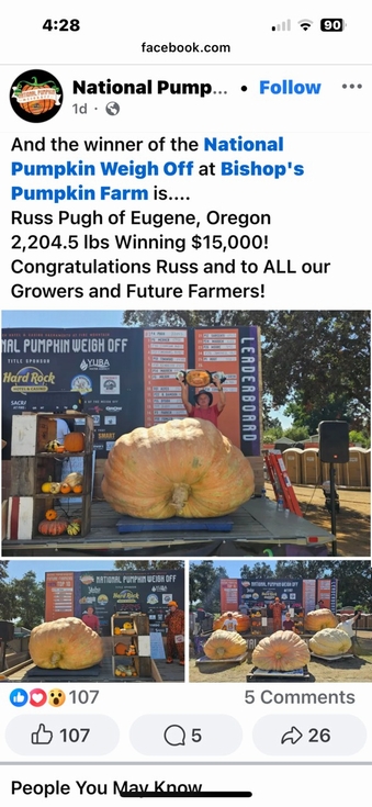 Fordzilla came through for me at the Hard Rock weigh off! Brad Bledsoe gave us a scare with a pumpkin that was larger than 'Zilla. But not heavier! Fordzilla is now the 2204.5 Pugh.