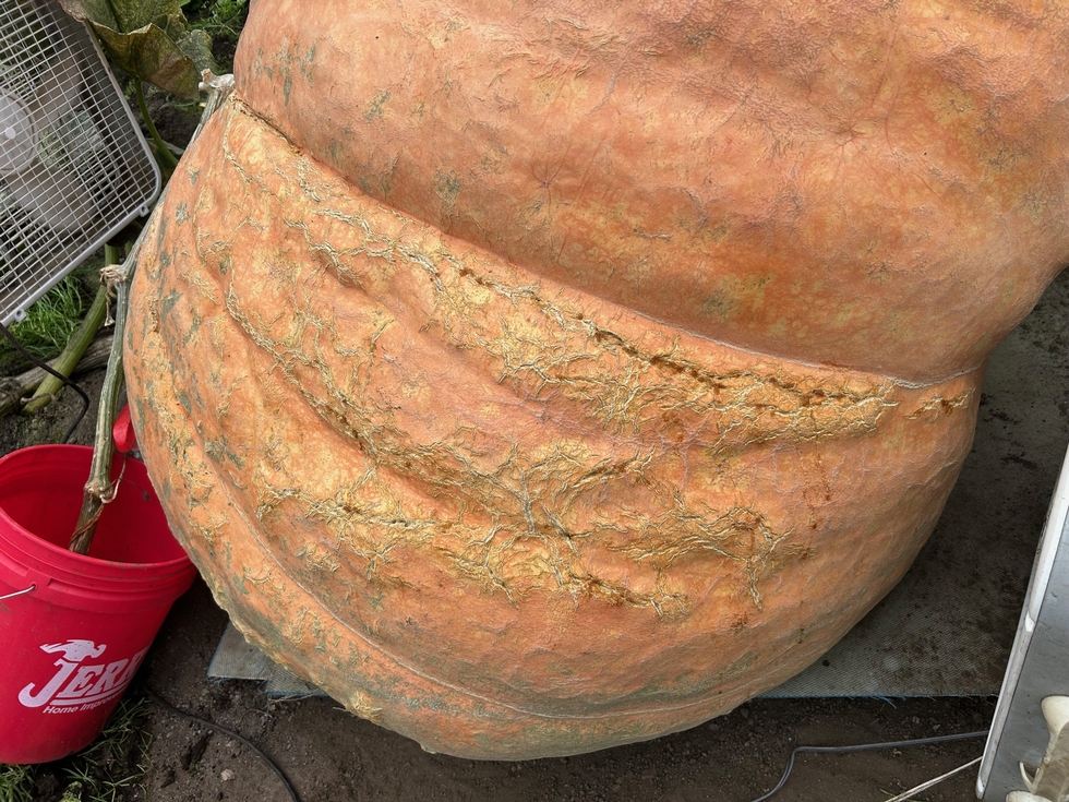 This pumpkin has more skin cracks than I have ever seen. Every pumpkin I have ever grown with skin cracks like these has gone super heavy.