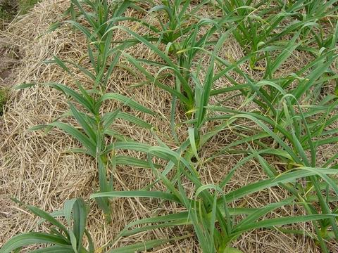 Garlics soil covered with straw as well. This year I planted five varieties. Morado de Cuenca from Spain, strong hot and tasty Spanish garlic, Rose de Lautrec, big heads with wonderful smelly from the South of France (I brought them there), Elephant garlic, with its 4-5 monster gloves, which really is a leek, and Georgian Fire and Rumanian red, which I bought last summer in the Okanogan Valley, WA.