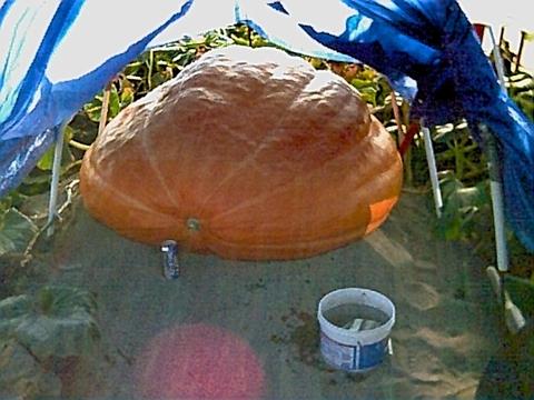 Heres a blossum end picture of "Flat Bastard" (sorry kids it's her name), I need advice on it's size as Circumference is 167.5" yet OTT is only 344.5" she is still moving forward at average of 4 pounds per day after a sneaky frost on the 12th that took half her tender leaves...