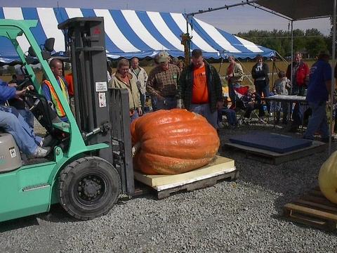 Well here is a shot of the third place pumpkin. 814 pounds!