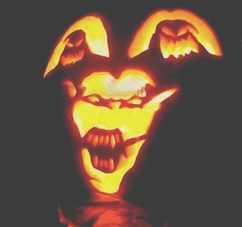Sixteen year old artist entering college as an Art Major next fall made this carving in five hours on a four hundred pound pumpkin. The pumpkin was known on BP.com diary as Annie II grown by docgipe.