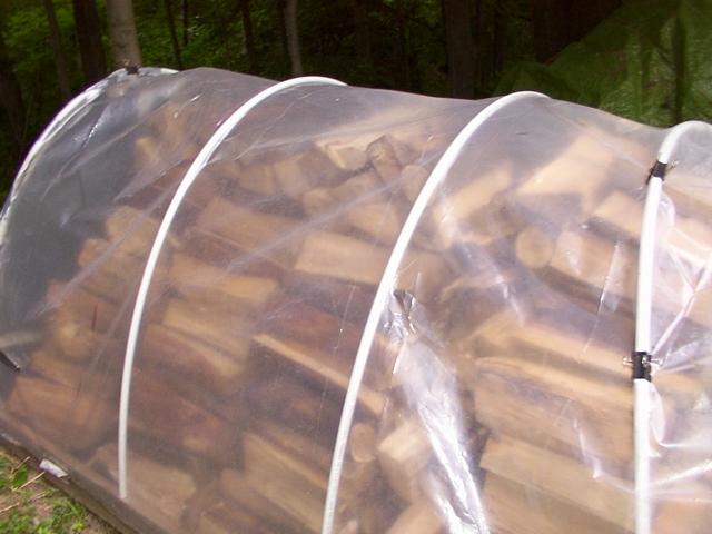 Just another shot of wood stacked inside of hoop house. Should keep nice and dry.