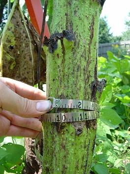 Here is a picture of a 10 inch stem circumference on a Craven variety sunflower from P&P Seeds. It is not uncommon to get stem circumference on this variety of sunflower. http://www.geocities.com/sunflower_info/