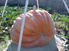 Pumpkin atop overgrown rosebush