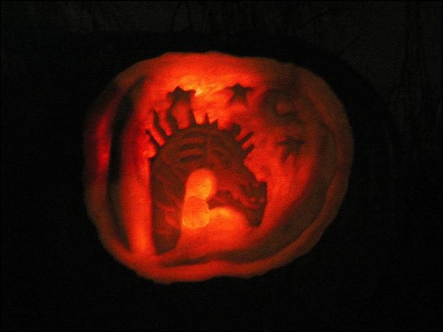 Well trick or treat was tonight & I got a chance to light up the dragon I "tried" to carve. I had a lot of folks saying " Is that real ? " And I said SURE & I fed it milk :)
