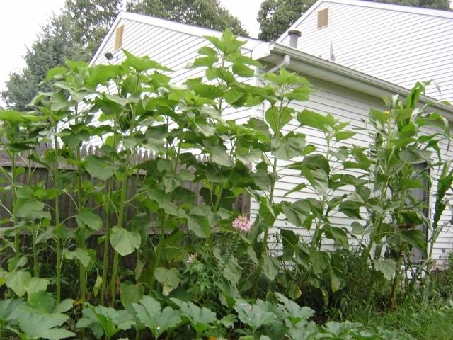 Picture of some sunflowers along my house in NJ. Sunflowers on left are experimental hybrids sent to me by the breeder of American Giant Hybrid. The tallest sunflowers were sent to me by Richard Hope in the UK. They are a strain of the Giant Single variety. The corn on the right is a tropical variety of maize named Jala. Below is a giant marrow from Robinson's Mammoth Onion seed co. in the UK. The tallest sunflower is ~10, and the tallest Jala is ~10. Some of the Richard Hope sunflowers prematurely put on heads and are only going to get 9 feet. The tallest one is probably going to get to 13 feet at least. Not as tall as I was hoping.