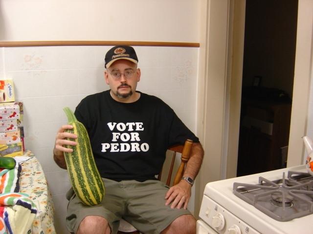 This is my biggest marrow so far at 7 lbs. It's really the only marrow I have to show for. Sad little thing! It's a Robinsons Mammoth Onion Co. giant marrow. I had this variety get quite a bit bigger last year. This variety has pretty yellow stripes on it. I haven't had many females this year, and a lot of them end up rotting. Last year was much cooler than this year; so that might be what is going on, or I might stink at growing giant stuff. I'm starting to get some marrows on some of the Bernard Lavery and Richard Hope plants. They seem to be moving a long nicely. I'm getting nervous that powdery mildew is going to start hitting near the end of August before I get any big ones. At this point, I don't care if I get a big one, just as long as I get some seeds to save.