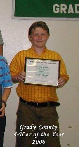 Tyler won 4-H er of the Year in Grady County Junior Division 2006.