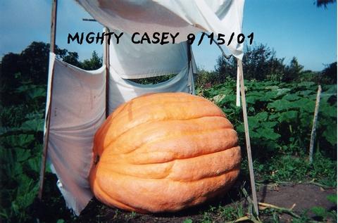 From the Emmon's 894 seed. Mighty Casey's Measurements: Stem to Blossom - 91" Middle - 92" Circumference - 145" Total - 328" Approx. Weight: 698.52 Lb