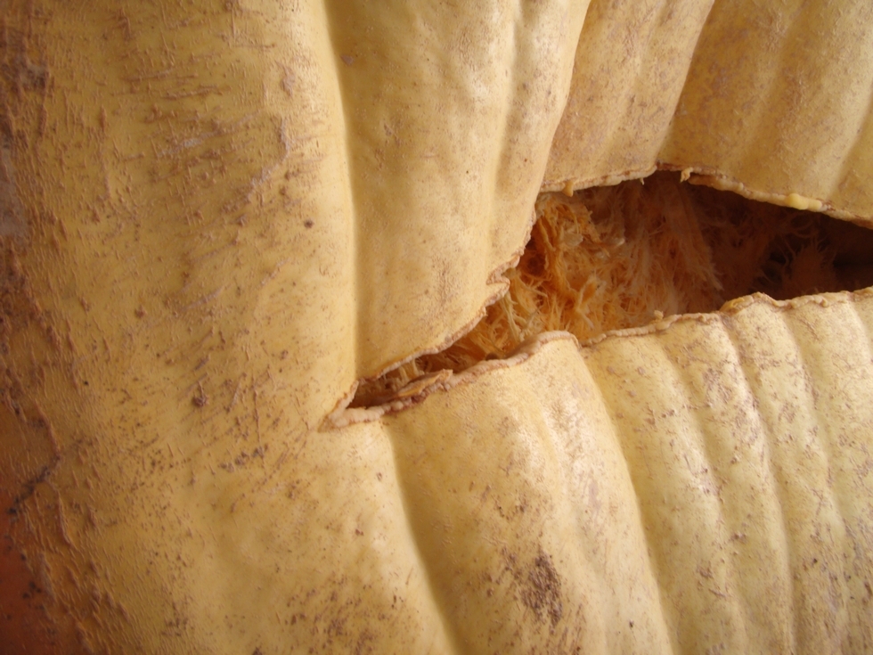 Partial picture of 4 foot long split on the bottom of one of Chris's pumpkins, dis-qualified.
