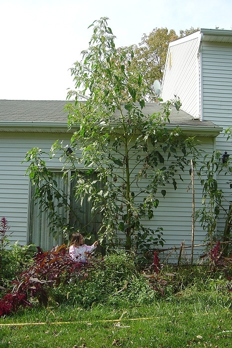 This amaranth looked promising early on in the season, but didn't do much. It branched out more than went up tall. It's probably close to about 20 feet tall.