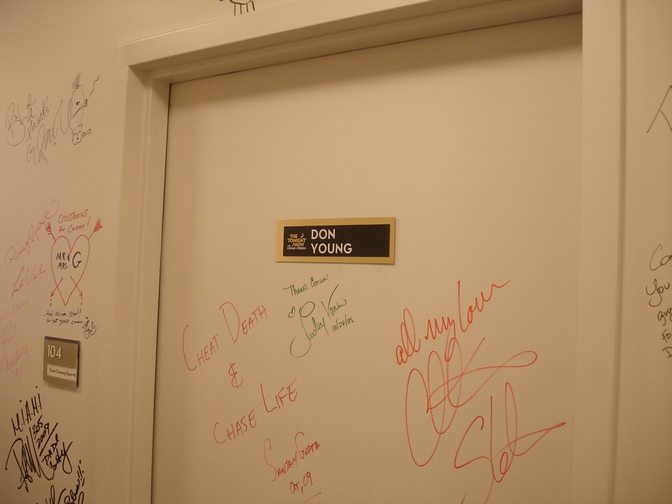 back stage tonight show all quests sign the walls of hallway and doors to many for me to read them all but i signed my name somewere also