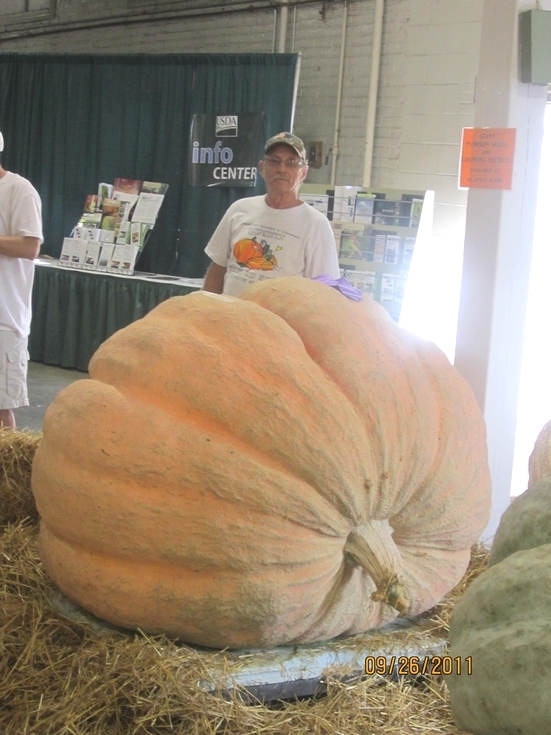 Joe Goetze of Pittsfield MA won 1st place in the adult division pumpkin weigh off at the Big E on Septemeber 23, 2011 weight-1278