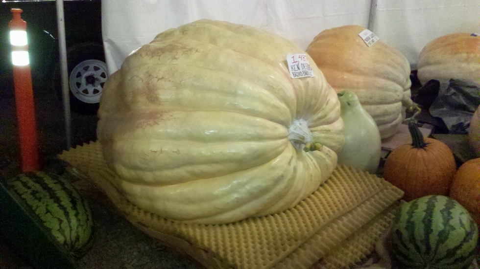 This is picture of my Durham Fair winning pumpkin on display.