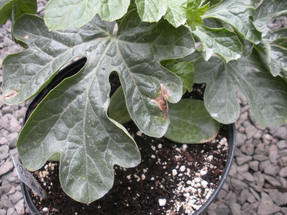 This is a picture of what I am seeing on some of my melon transplants. Any ideas?