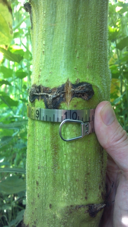 Nearly 10 inch circumference sunflower stalk.