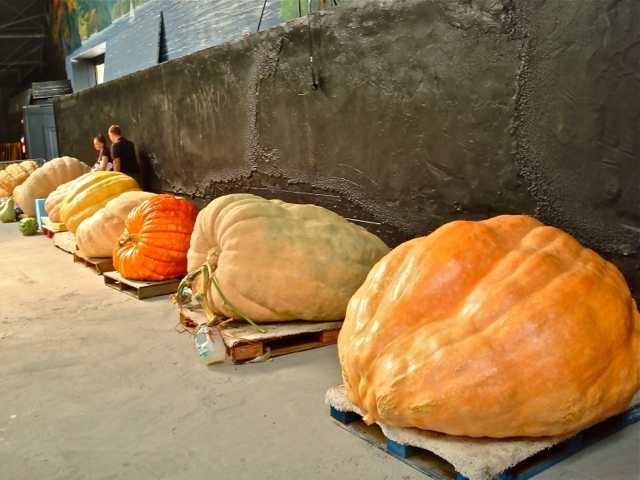 Gary Miller won 1st Place at the National Heirloom Expo in Santa Rosa, CA with 1392 lbs.(1409 Miller x 1495 Stelts)(second from right). Russ Pingrey was 2nd with 1323 lbs.(1548 Hawkley x 1284 Pingrey)(far right).