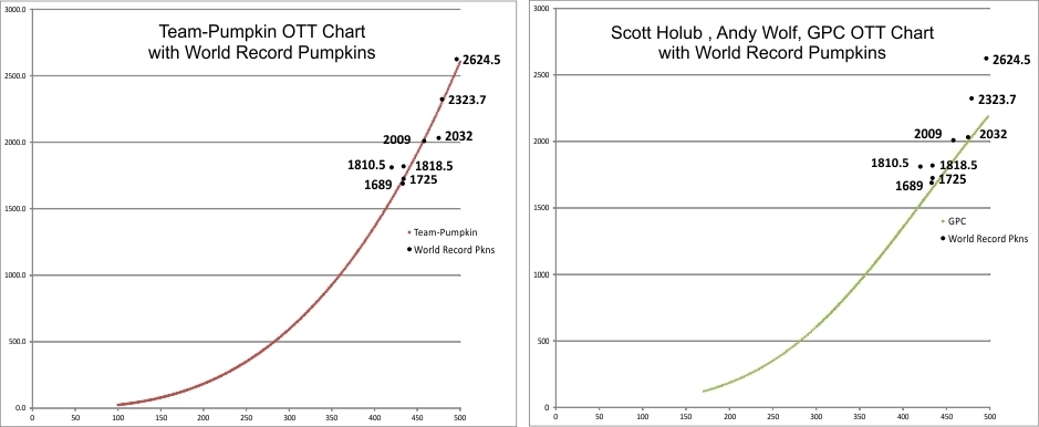 World Record Pumpkins and how they fit to the Team-Pumpkin OTT Chart and to the Holub/Wolf GPC Chart