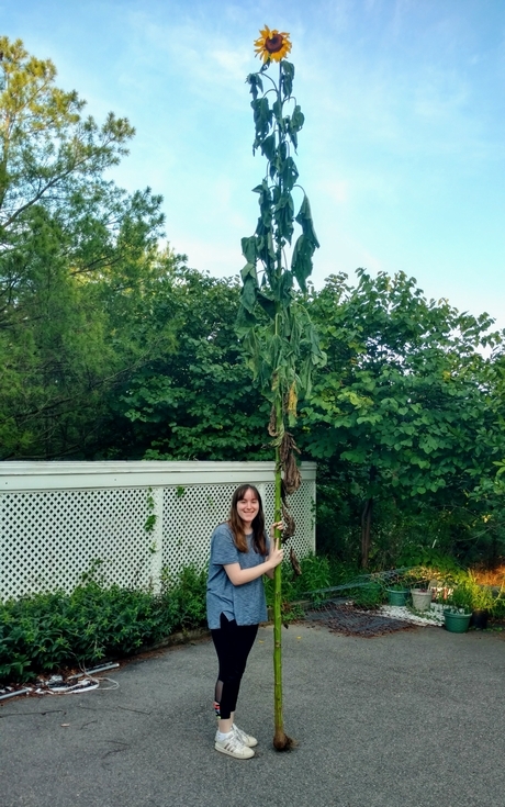 13 feet 10 inch Sunflower tipped over from the wind.